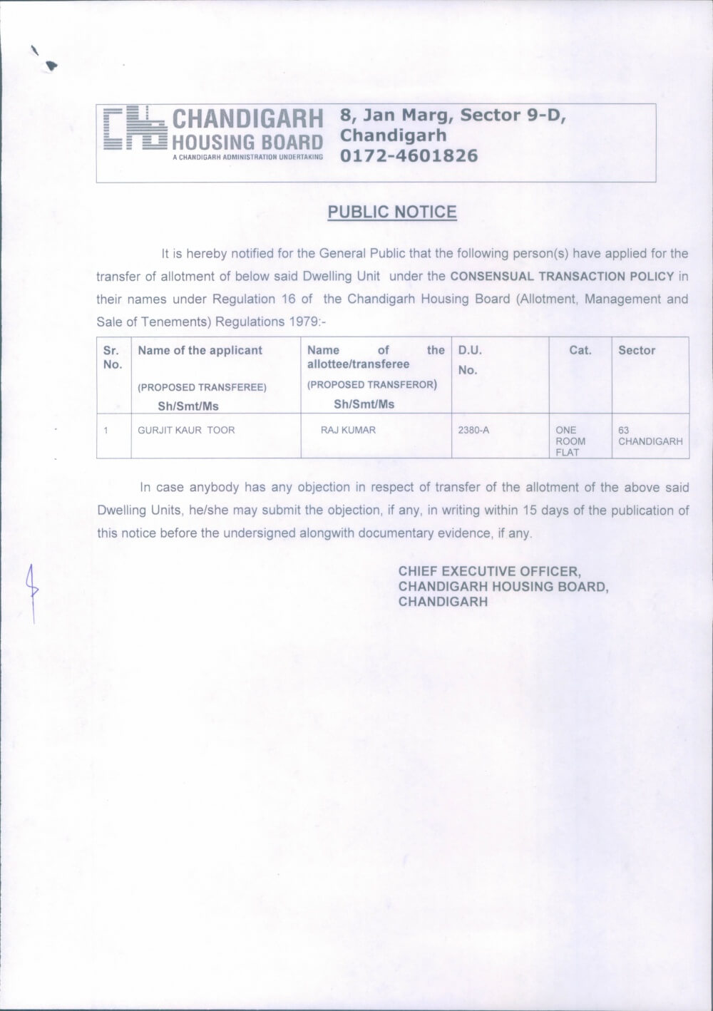 Transfer of D.U. No. 1762,S/29B, Chd. on the basis of Consensual Transaction Policy.July 11, 2018Transfer of D.U. No. 2351-3,S/45C, Chd. on the basis of Consensual Transaction Policy.July 11, 2018 Show all Transfer of D.U. No. 2380-A,S/63 on the basis of Consensual Transaction Policy. Chbonline Related postsMutation/Transfer of #2133-1, Sec.45-C, Chd. dt.06.03.2026Read more Comments are closed.