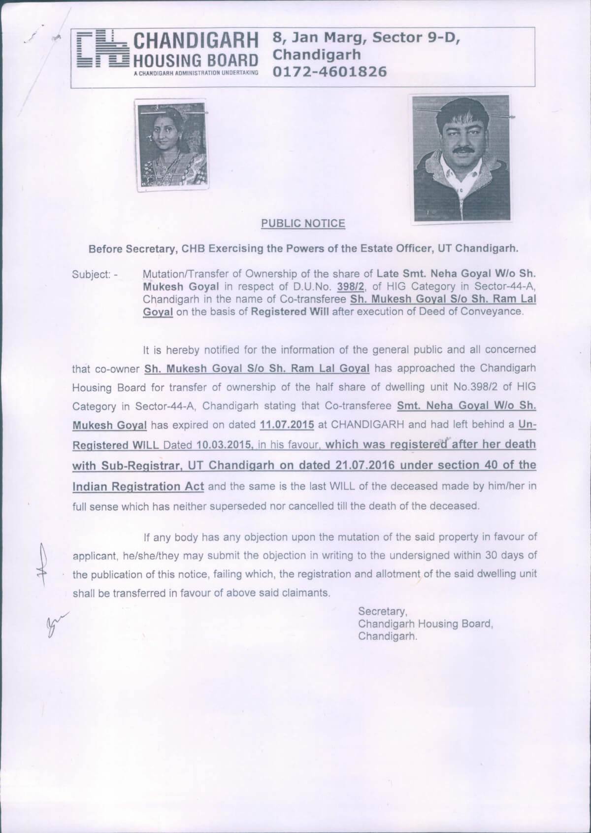 Transfer of owner ship du no 3865 sector 47-d on the basis of registered will after deed of conveyance dated-1-8-16August 2, 2016Transfer of property in the name of GPA/SPA HOLDERSAugust 2, 2016 Show all Transfer of owner ship du no 398-2 sector 44-a on the basis of registered will after deed of conveyance dated-29-7-16 Chbonline Related postsPublications dt.05.03.2026Read more Comments are closed.